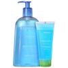 Kit com gel de banho e gel de limpeza facial. Kit Bioderma Atoderm Sébium proporciona limpeza suave e purificante do rosto e do corpo, sem ressecar a pele.